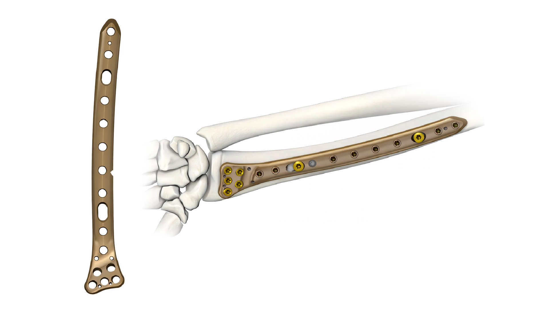 Entendemos que cada anatomía y cada nivel de pérdida ósea es diferente. Por ello, nuestro sistema ofrece tres diseños de placa optimizados que garantizan un ajuste preciso desde el radio distal hasta el tercer metacarpiano: